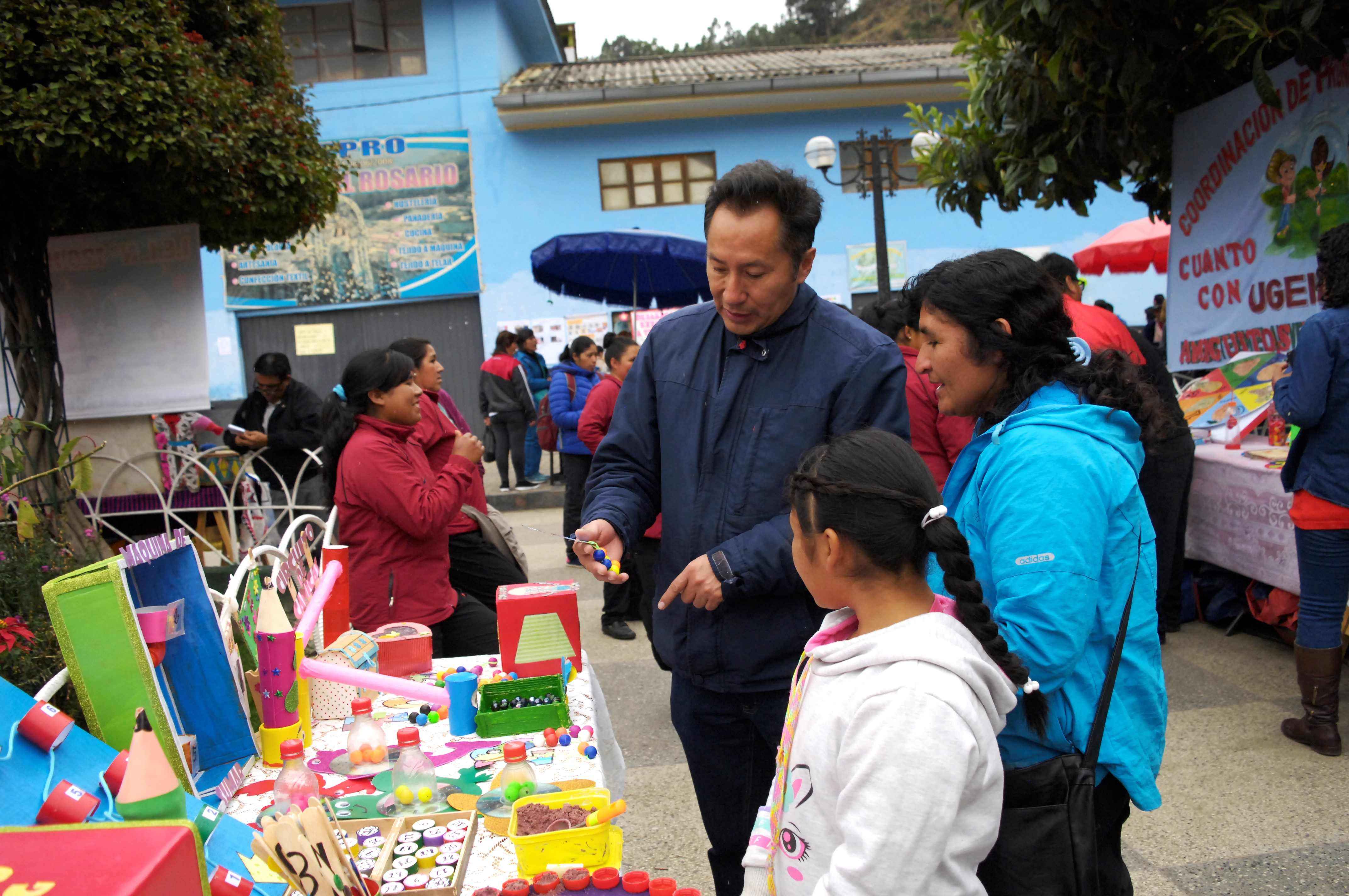 Esta actividad tuvo como protagonistas a los docentes de las Instituciones Educativas de Educación Inicial, los Coordinadores de PRONOEI, padres de familia y algunos alumnos, quienes exhibieron sus creaciones y explicaron el uso adecuado de los materiales elaborados para esta ocasión.