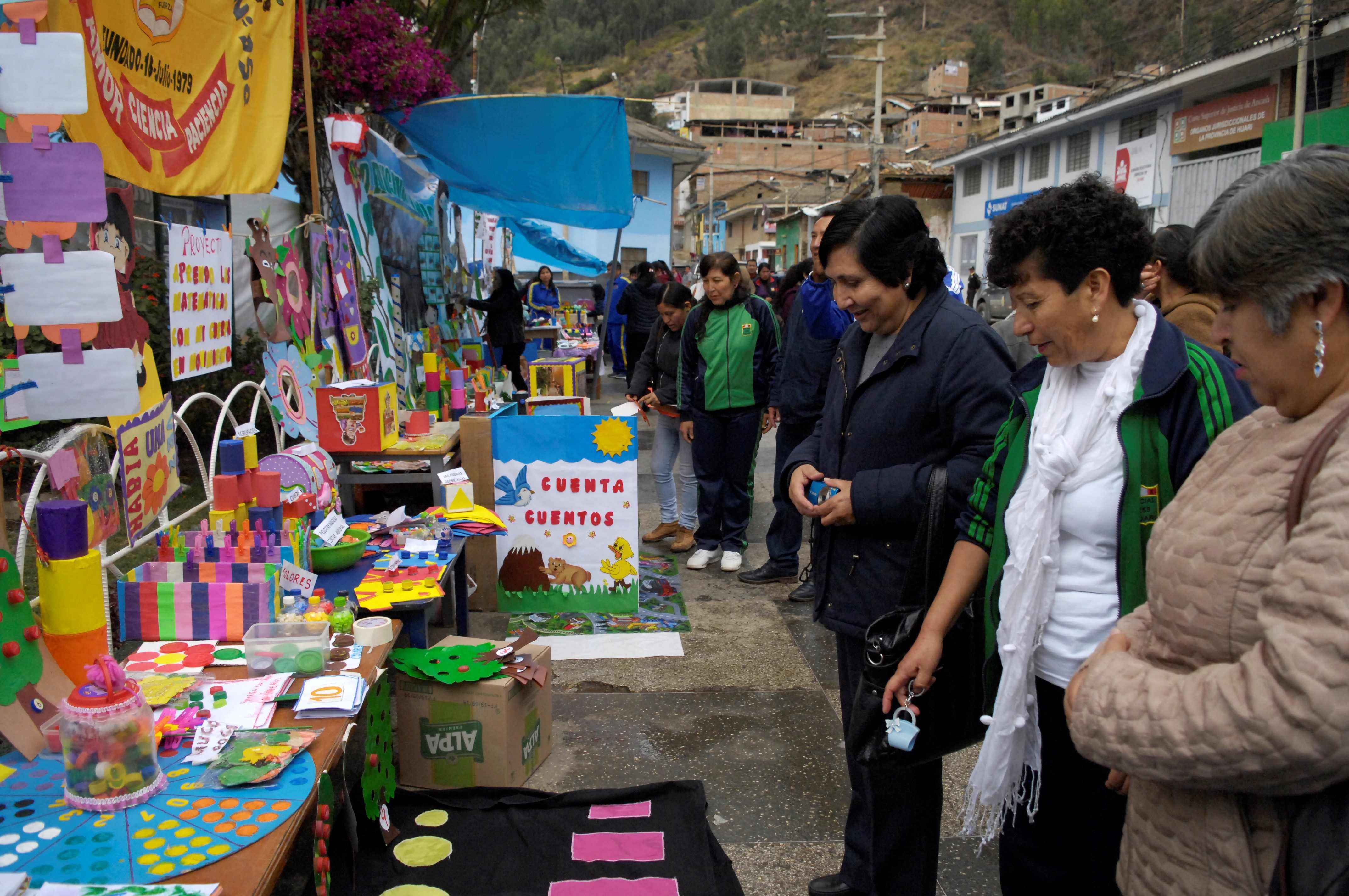 DOCENTES DE LAS INSTITUCIONES EDUCATIVAS DE INICIAL Y PRONEI DE LA UGEL HUARI REALIZAN EXPOSICIÓN DE MATERIALES EDUCATIVOS